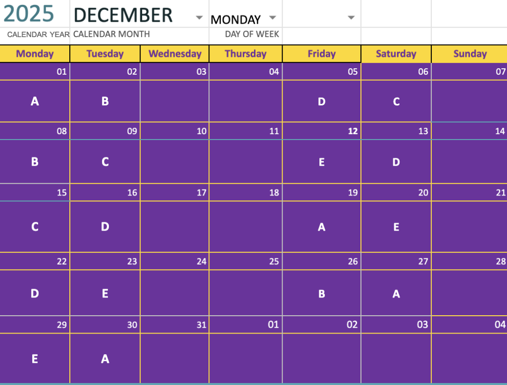 Our schedule will vary through the year to accommodate more classes and more activities. You can check our updated timetable here.